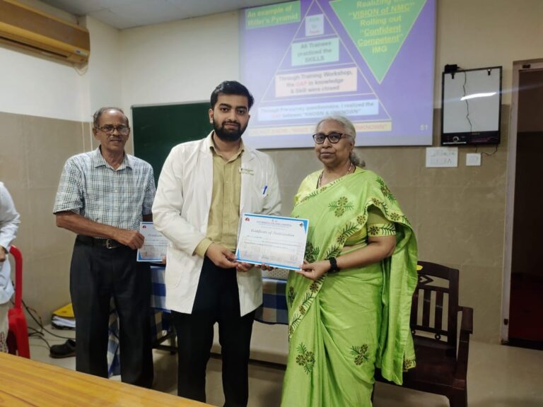 Dean Madam felicitated interns who participated in the Parenteral Route Administration Workshop with participatory certificate. There are 87 interns participated.