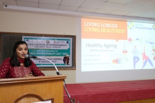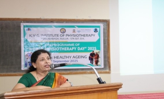 “World Physiotherapy Day” is celebrated every year on 8th September to recognize the vital role Physiotherapists play in keeping people healthy and independent. The K.V.G. Institute of Physiotherapy, Sullia, observed this day with the theme “Healthy Ageing”, highlighting the importance of Physiotherapy in promoting functional independence, mobility, and quality of life among older adults. Welcome address was delivered by Dr.Mahesh Reddy Associate professor KVGIP