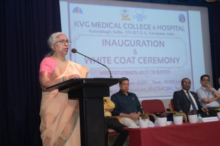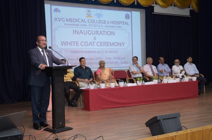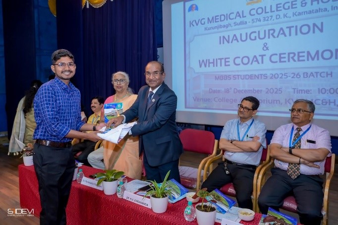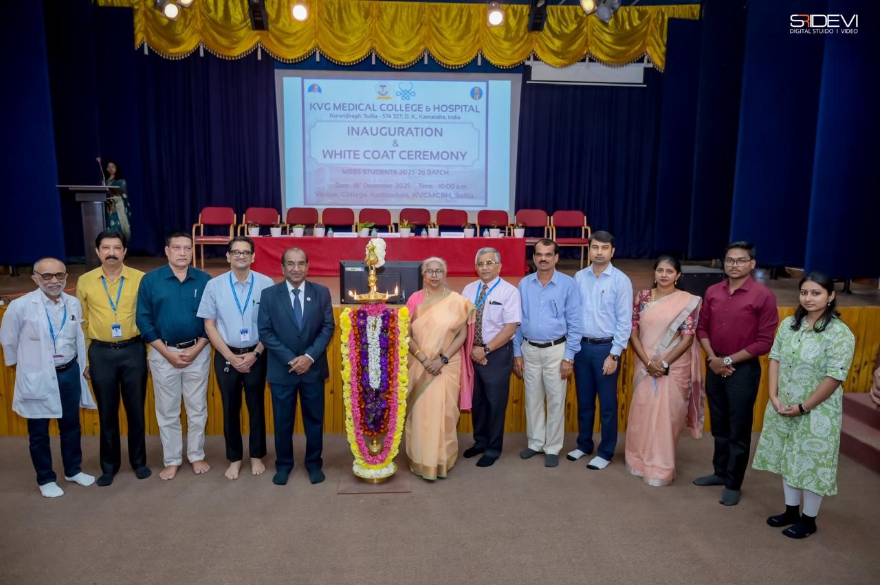 The Inauguration and White Coat Ceremony for the MBBS students of the 2025–26 batch was conducted on 18 December 2025 at 10:00 a.m. in the College Auditorium of KVG Medical College & Hospital, Sullia. The ceremony marked the formal entry of 150 first-year MBBS students into medical education and professional life. The programme was presided over by Dr. K V Chidananda, President, AOLE and Medical Director, KVGMC&H, Sullia.