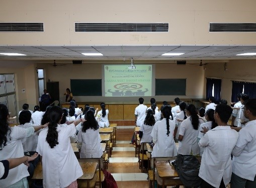 The Nasha Mukt Bharat Abhiyan (Drug-Free India Campaign) pledge was observed at KVG Medical College & Hospital, Sullia with active participation from students, faculty, and